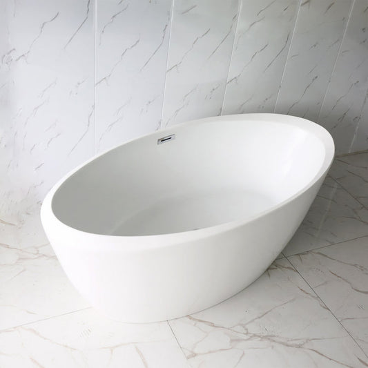 TONA Skysea 59" Glossy White Acrylic Freestanding Oval Bathtub With Chrome-Plated Drain Cover & Overflow Cover
