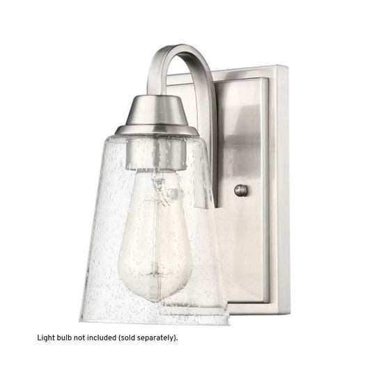 Craftmade Grace 5" x 9" 1-Light Brushed Polished Nickel Wall Sconce With Clear Seeded Glass Shade