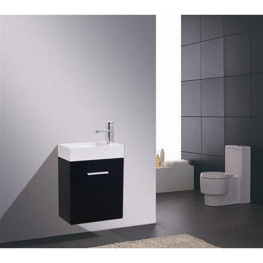 KubeBath Bliss 18" Black Wall-Mounted Modern Bathroom Vanity With Single Integrated Acrylic Sink With Overflow
