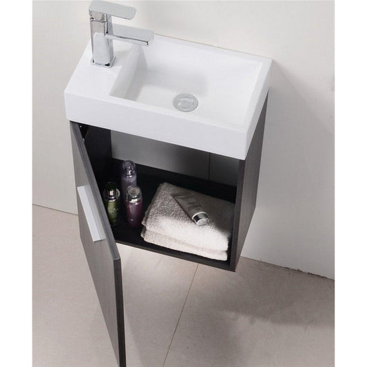 KubeBath Bliss 18" Gray Oak Wall-Mounted Modern Bathroom Vanity With Single Integrated Acrylic Sink With Overflow