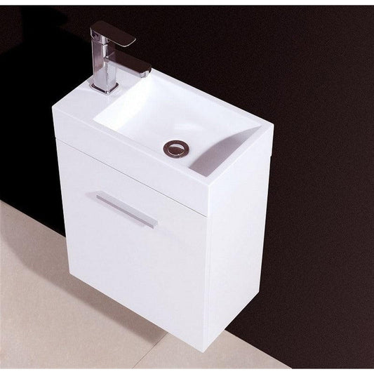 KubeBath Bliss 18" High Gloss White Wall-Mounted Modern Bathroom Vanity With Single Integrated Acrylic Sink With Overflow