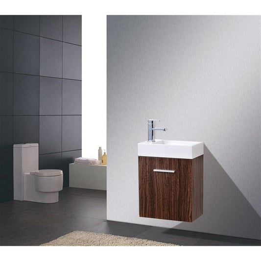 KubeBath Bliss 18" Walnut Wall-Mounted Modern Bathroom Vanity With Single Integrated Acrylic Sink With Overflow