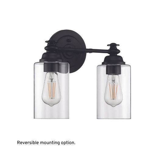 Craftmade Essex 18" 2-Light Flat Black Vanity Light With Clear Glass Shades