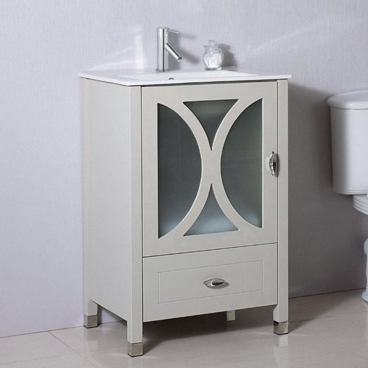 Bellaterra Home 24" 1-Door 1-Drawer Light Gray Freestanding Vanity Set With Ceramic Integrated Sink and Ceramic Top