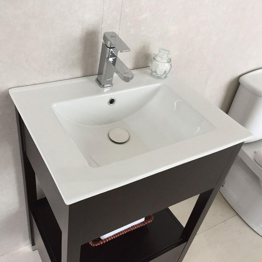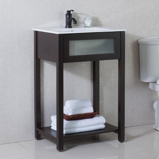 Bellaterra Home 24" 1-Drawer Espresso Freestanding Vanity Set With Ceramic Integrated Sink and Ceramic Top