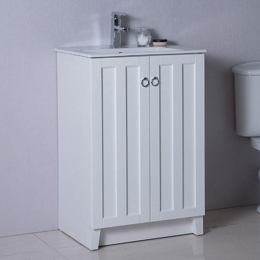 Bellaterra Home 24" 2-Door White Freestanding Vanity Set With Ceramic Integrated Sink and Ceramic Top