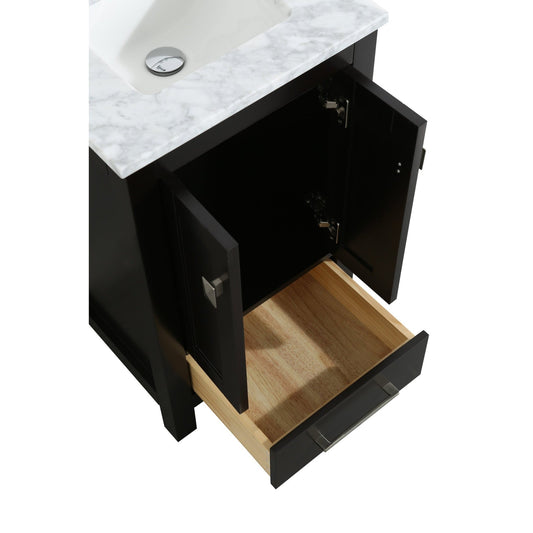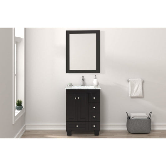 Eviva Happy 24" x 34" Espresso Freestanding Bathroom Vanity With White Carrara Marble Top and Single Undermount Porcelain Sink