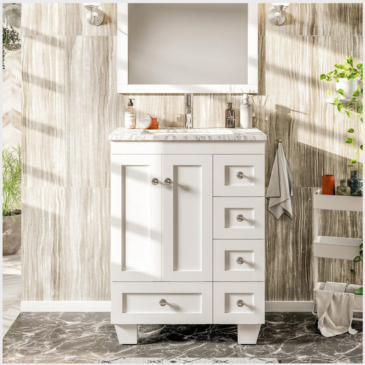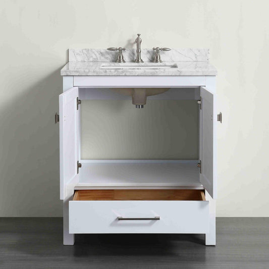 Eviva Happy 24" x 34" White Freestanding Bathroom Vanity With White Carrara Marble Top and Single Undermount Porcelain Sink