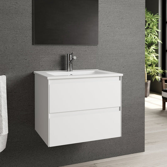 Eviva Bloom 24" x 34" Matte White Wall-Mounted Bathroom Vanity With White Single Integrated Porcelain Sink