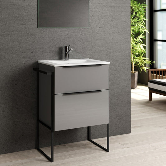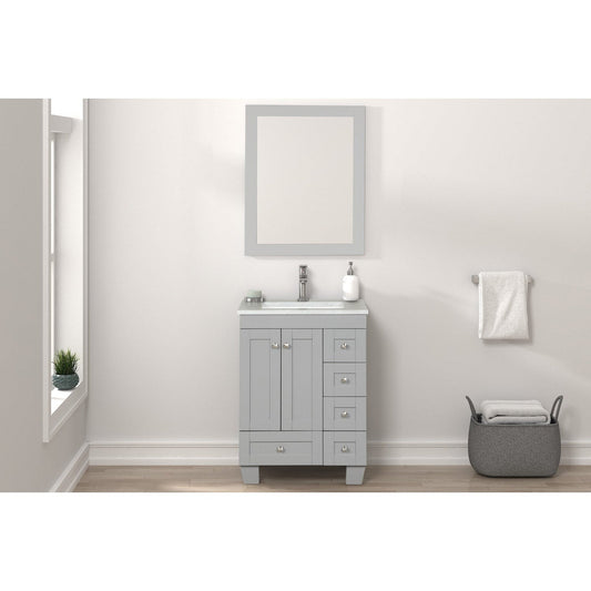 Eviva Marina 24” x 34” Gray Freestanding Bathroom Vanity With White Integrated Porcelain Sink