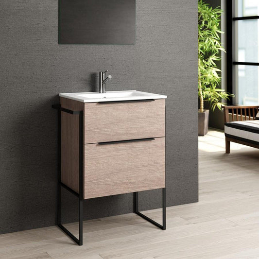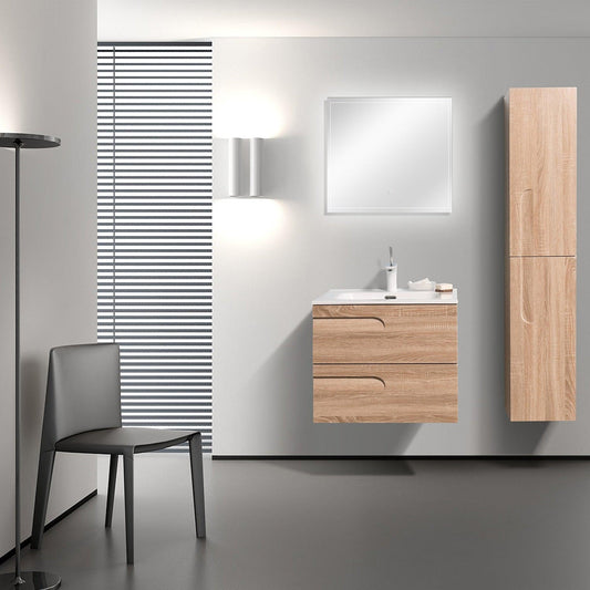 Eviva Marina 24” x 34” Natural Oak Freestanding Bathroom Vanity With White Integrated Porcelain Sink