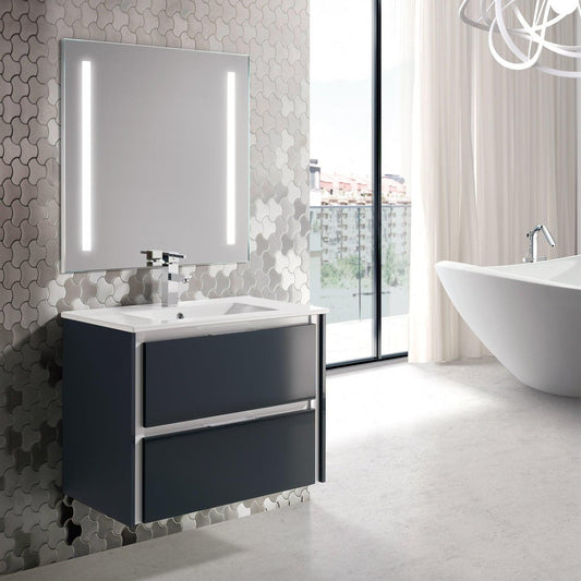Eviva Luna 24" x 34" Dark Gray Wall-Mounted Bathroom Vanity With White Integrated Porcelain Sink