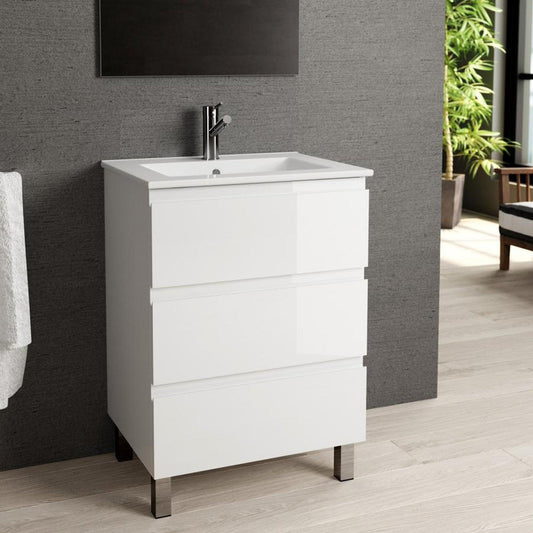 Eviva Vitta 24" x 34" White Freestanding Bathroom Vanity With White Integrated Porcelain Sink