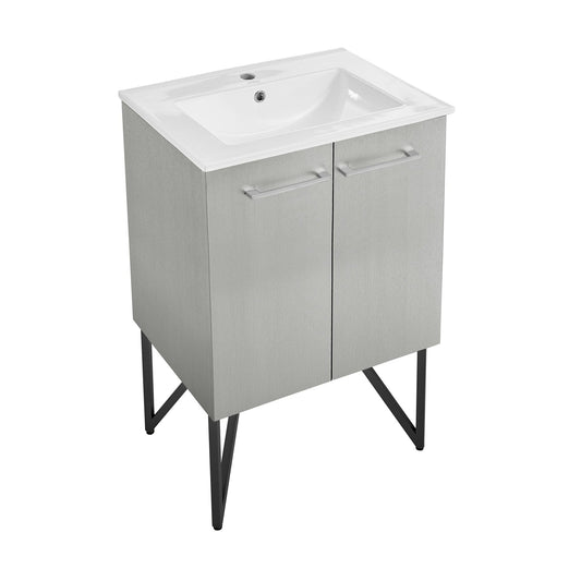 Swiss Madison Marseille 24" x 35" Freestanding Gray Oak Bathroom Vanity With Ceramic Single Sink and Stainless Steel Metal Legs