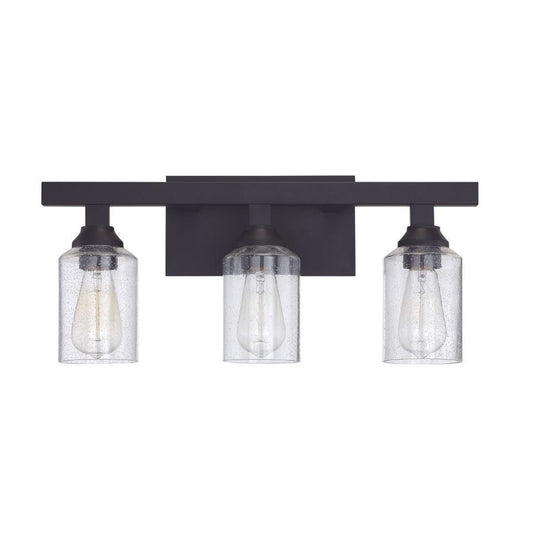 Craftmade Chicago 22" 3-Light Flat Black Vanity Light With Clear Seeded Glass Shades