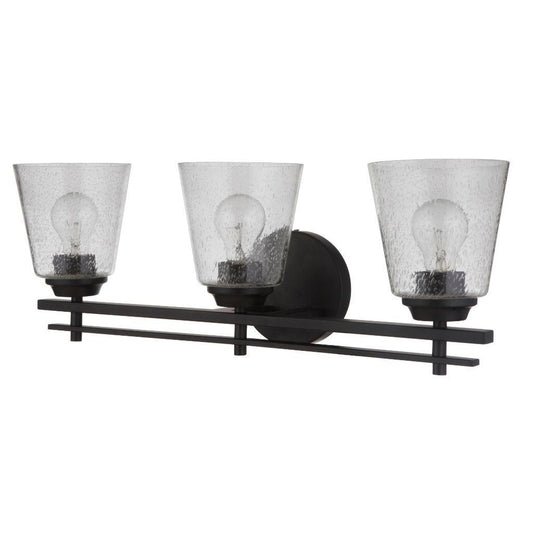 Craftmade Drake 24" 3-Light Flat Black Vanity Light With Clear Seeded Glass Shades