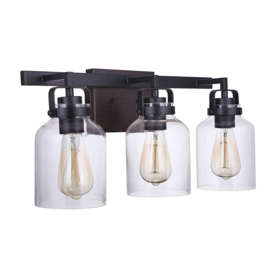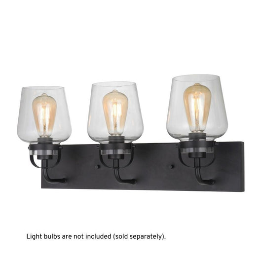 Craftmade Trystan 22" 3-Light Flat Black Vanity Light With Clear Glass Shades
