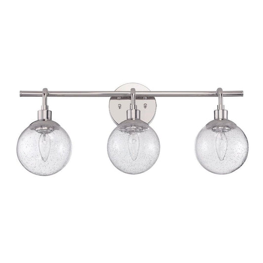 Craftmade Que 24" 3-Light Chrome Vanity Light With Clear Seeded Glass Globe Shades