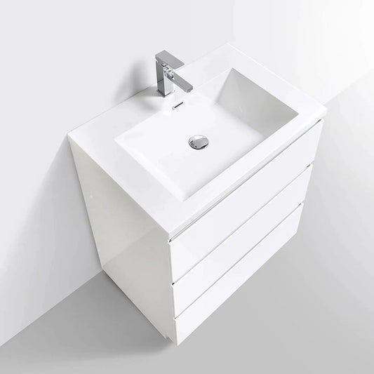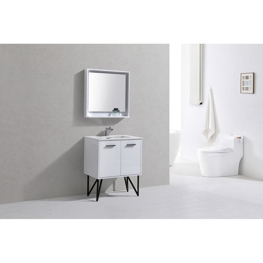 KubeBath Bosco 30" High Gloss White Modern Freestanding Bathroom Vanity With Single Undermount Sink With Overflow