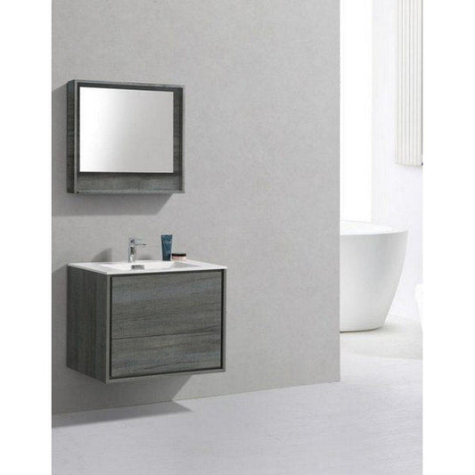 KubeBath DeLusso 30" Ocean Gray Wall-Mounted Modern Bathroom Vanity With Single Integrated Acrylic Sink With Overflow and 30" White Framed Mirror With Shelf