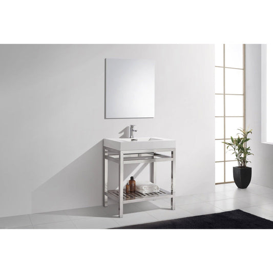 KubeBath Cisco 30" Stainless Steel Chrome Console Freestanding Modern Bathroom Vanity With Single Integrated Acrylic Sink With Overflow