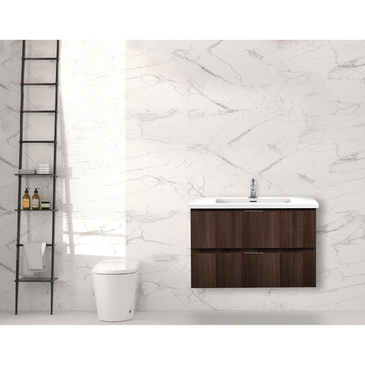 ANZZI Conques Series 30" x 20" Dark Brown Solid Wood Bathroom Vanity With Glossy White Sink and Countertop