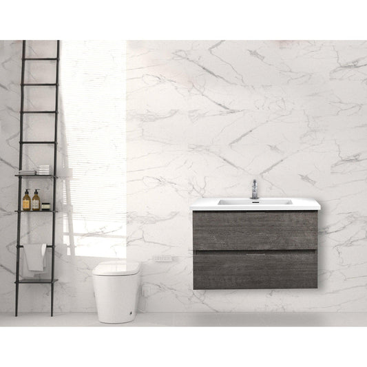 ANZZI Conques Series 30" x 20" Rich Gray Solid Wood Bathroom Vanity With Glossy White Sink and Countertop
