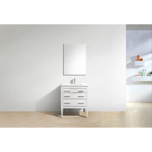 Kubebath Eiffel 30" High Gloss White Freestanding Modern Bathroom Vanity With Quartz Vanity Top & Ceramic Undermount Sink