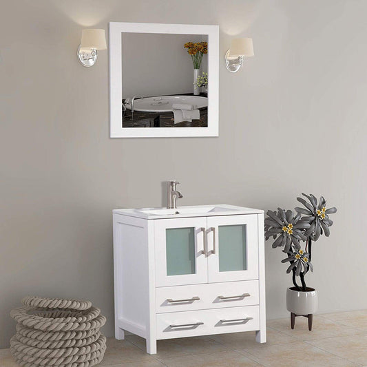 Vanity Art Genoa 30" Single White Freestanding Modern Bathroom Vanity Set With Super White Engineered Marble Top, White Ceramic Sink, Backsplash and Mirror