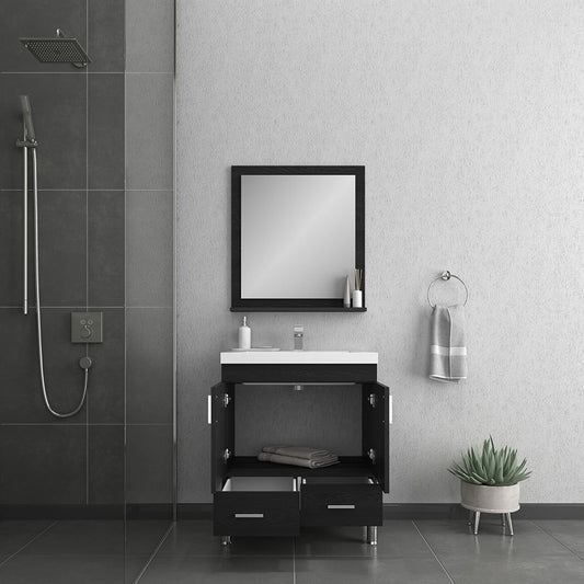 Alya Bath Ripley 30" Single Black Modern Freestanding Bathroom Vanity With Integrated Acrylic Top, Acrylic Sink and Wall Mounted Mirror