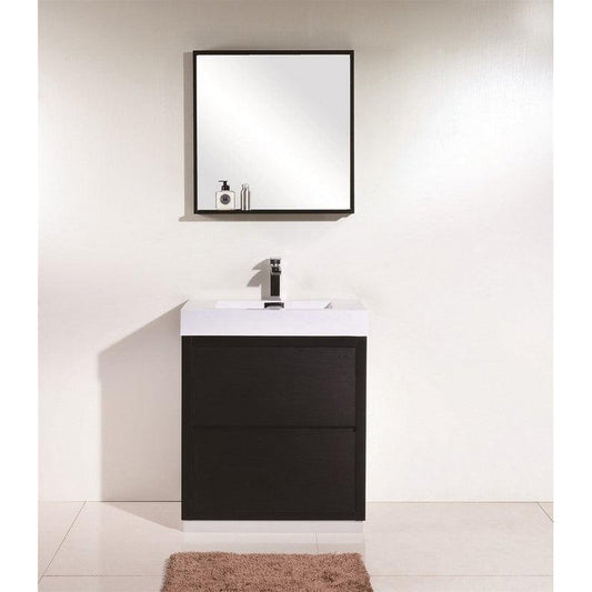 KubeBath Bliss 30" Black Freestanding Modern Bathroom Vanity With Single Integrated Acrylic Sink With Overflow
