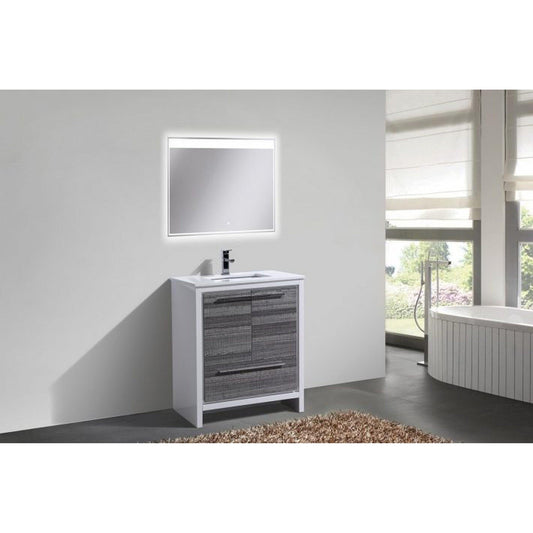 KubeBath Dolce 30" Ash Gray Freestanding Modern Bathroom Vanity With Quartz Vanity Top & Ceramic Sink With Overflow