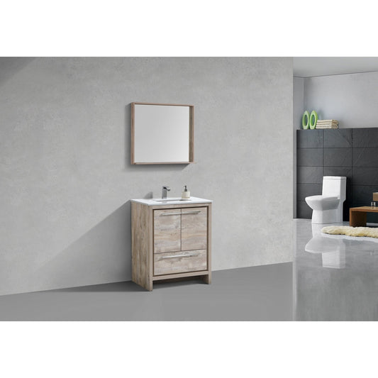 KubeBath Dolce 30" Nature Wood Freestanding Modern Bathroom Vanity With Quartz Vanity Top & Ceramic Sink With Overflow