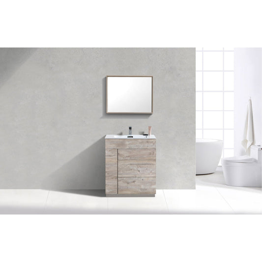 KubeBath Milano 30" Nature Wood Freestanding Modern Bathroom Vanity With Aluminum Kick Plate & Acrylic Composite Integrated Sink With Overflow