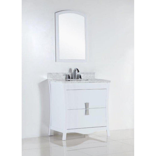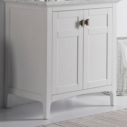 Bellaterra Home 500709 30" 2-Drawer White Freestanding Vanity Set With Ceramic Undermount Rectangular Sink and White Carrara Marble Top