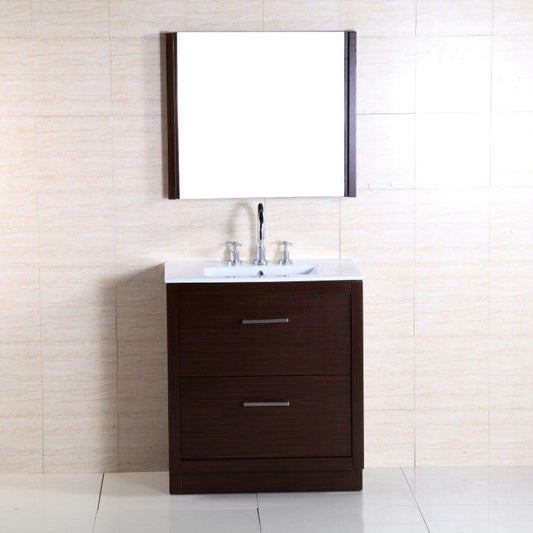 Bellaterra Home 30" 2-Drawer Wenge Freestanding Vanity Set With Ceramic Integrated Sink and Ceramic Top