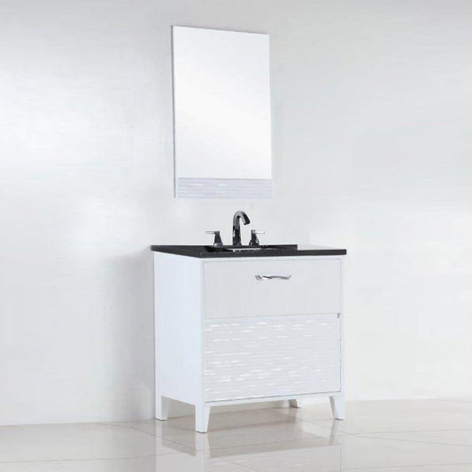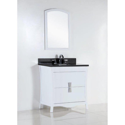 Bellaterra Home 500709 30" 2-Drawer White Freestanding Vanity Set With Ceramic Undermount Rectangular Sink and Black Galaxy Granite Top