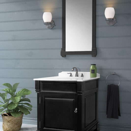 Altair Edolo 30" Matte Black Single Stainless Steel Bathroom Vanity Set Console With Mirror, Snow White Stone Top, Single Rectangular Undermount Ceramic Sink, and Safety Overflow Hole