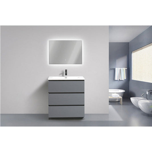 Moreno Bath Angeles 30" High Gloss Gray Freestanding Vanity With Single Reinforced White Acrylic Sink