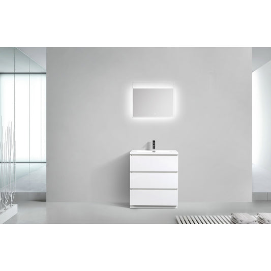 Moreno Bath Angeles 30" High Gloss White Freestanding Vanity With Single Reinforced White Acrylic Sink