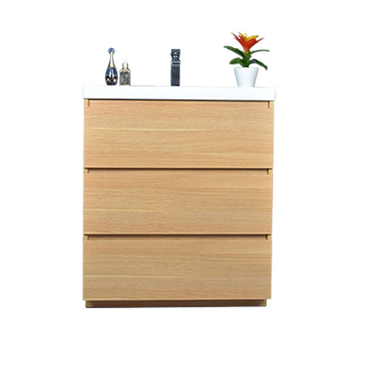 Moreno Bath Angeles 30" Nature Oak Freestanding Vanity With Single Reinforced White Acrylic Sink