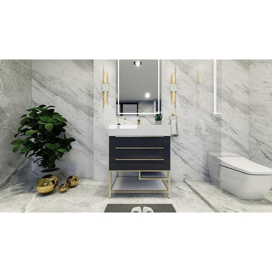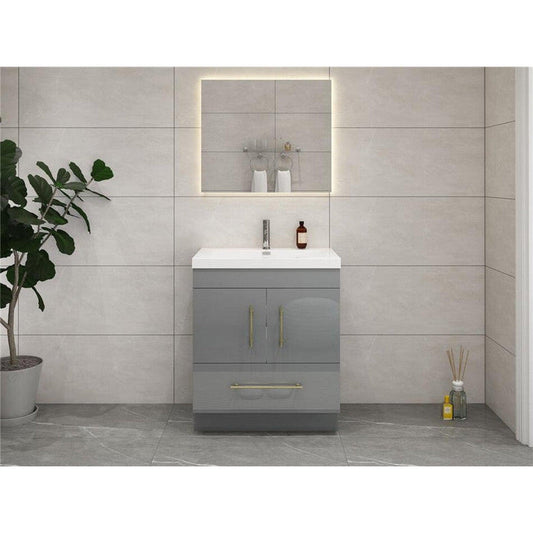 Moreno Bath ELSA 30" High Gloss Gray Freestanding Vanity With Single Reinforced White Acrylic Sink