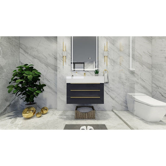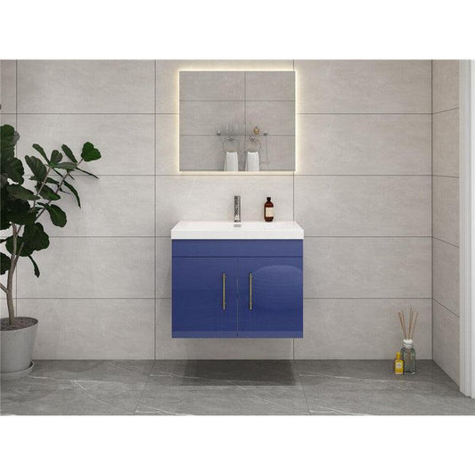 Moreno Bath ELSA 30" High Gloss Night Blue Wall-Mounted Vanity With Single Reinforced White Acrylic Sink