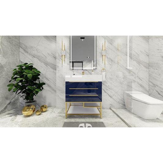 Moreno Bath Bethany 30" High Gloss Night Blue Freestanding Vanity With Single Reinforced White Acrylic Sink