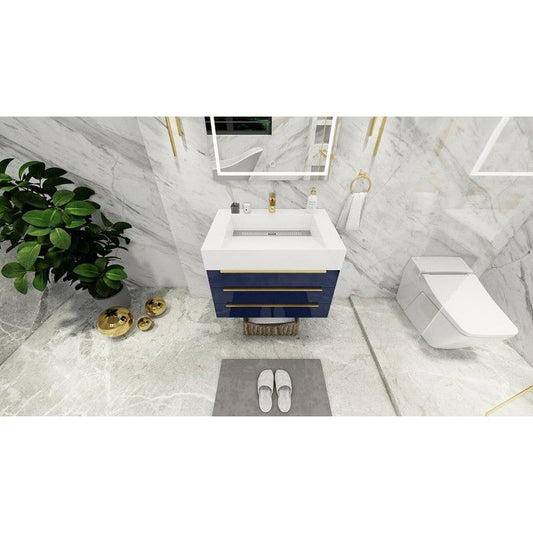 Moreno Bath Bethany 30" High Gloss Night Blue Wall-Mounted Vanity With Single Reinforced White Acrylic Sink