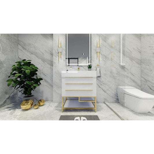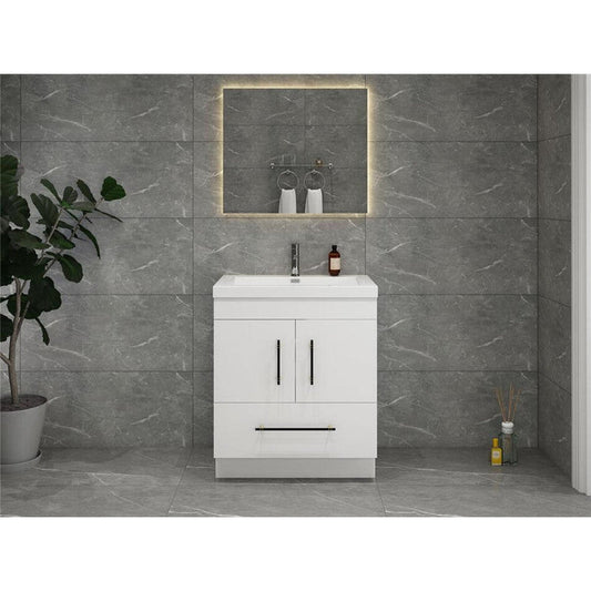 Moreno Bath ELSA 30" High Gloss White Freestanding Vanity With Single Reinforced White Acrylic Sink