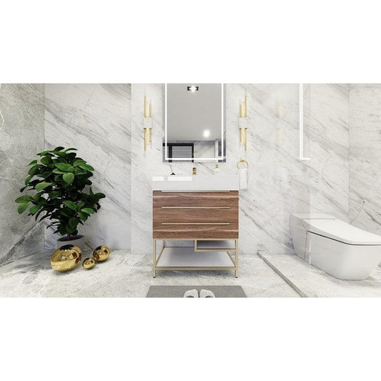 Moreno Bath Bethany 30" Rosewood Freestanding Vanity With Single Reinforced White Acrylic Sink