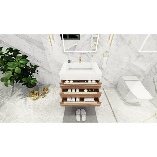 Moreno Bath ALYSA 30" White Oak Floating Vanity With Single Reinforced White Acrylic Sink