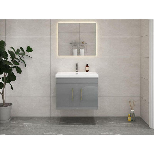 Moreno Bath ELSA 30" High Gloss Gray Wall-Mounted Vanity With Single Reinforced White 16" Acrylic Sink
