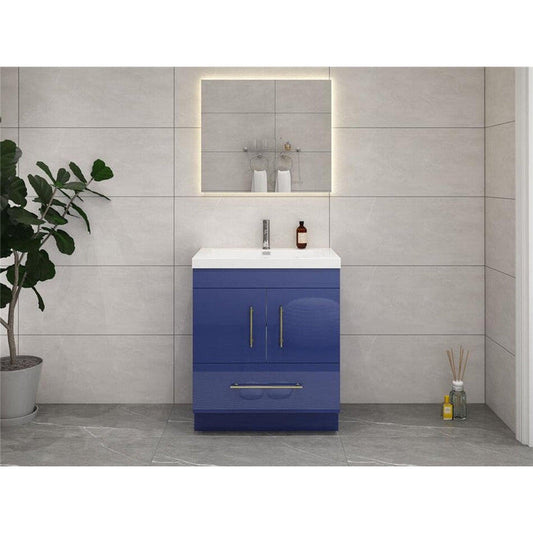 Moreno Bath ELSA 30" High Gloss Night Blue Freestanding Vanity With Single Reinforced White Acrylic Sink